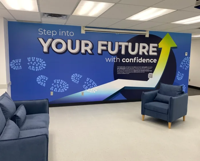 Wall murals are also a signage solution for promotional or business settings as they allow you to add character to offices, lobbies, hallways, or other workspaces. Since they’re so versatile, you can use them to reflect your company values, highlight key messages, and improve the overall ambiance of an office space.